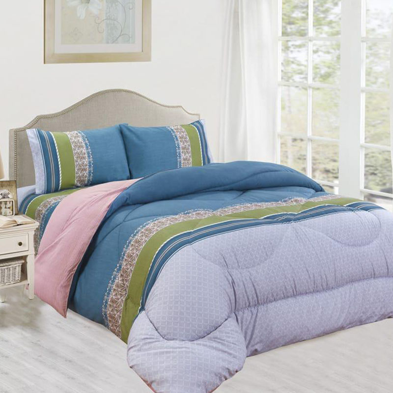 Edredón acolchado King 1200 hilos con franjas morado, lila, rosado y marrón